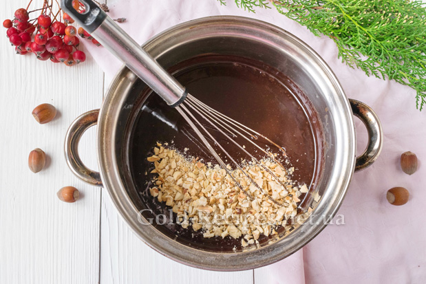 Додамо подрібнені горіхи в гарячу нутеллу.