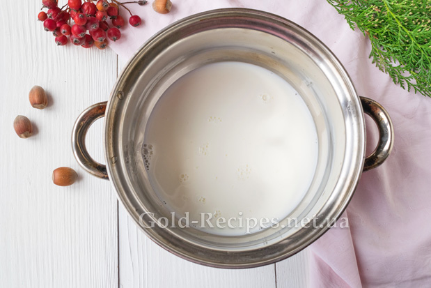 У каструлю наллємо одну склянку молока. Поставимо його на середній вогонь і доведемо молоко до кипіння.