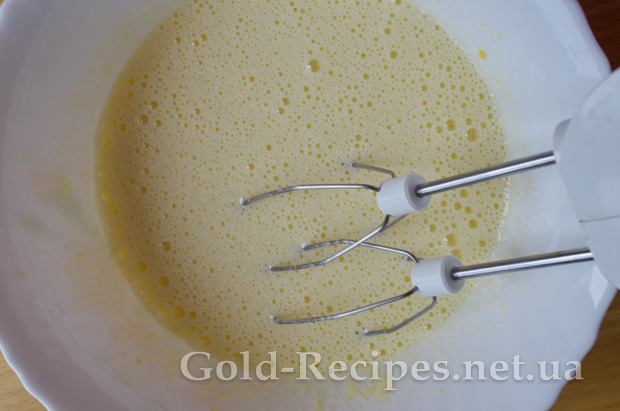 Збиваємо яйця з цукром міксером на великій швидкості до повного розчинення цукру.