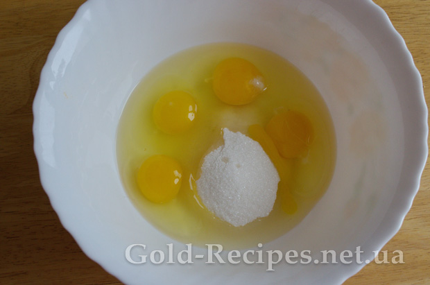 Яйця розбиваємо в миску, і додаємо цукор.