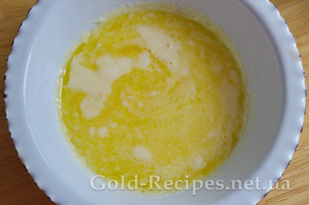 Вершкове масло потрібно розтопити на вогні, або в мікрохвильовці, до рідкого стану.