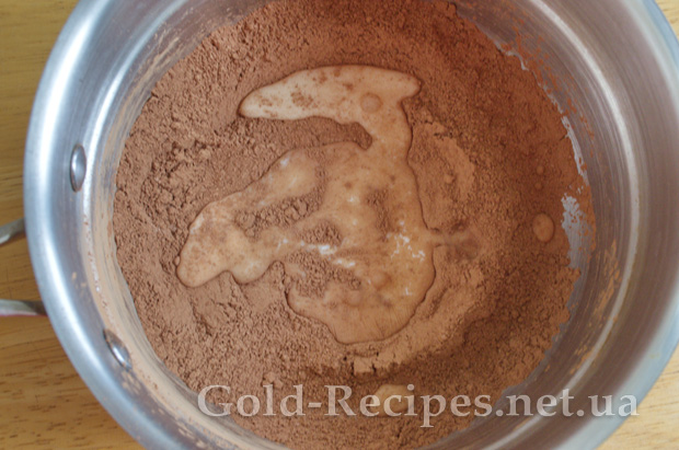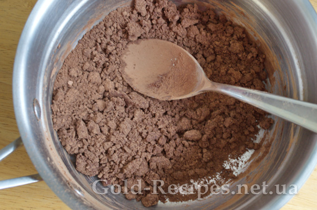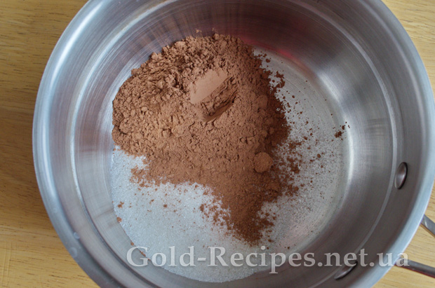 Змішуємо в сотейнику цукор і какао.