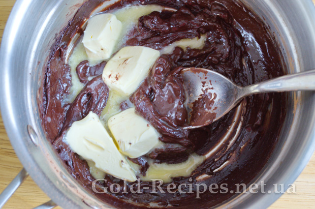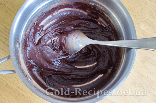 Знімаємо глазур з вогню, і ретельно перемішуємо, щоб масло інтегрувалося в шоколад.