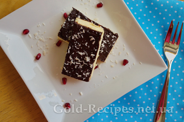 Трохи остиглий львівський сирник покриваємо шоколадною глазур’ю. Я зробила це просто у формі, щоб було швидше.