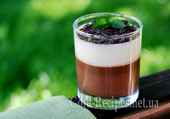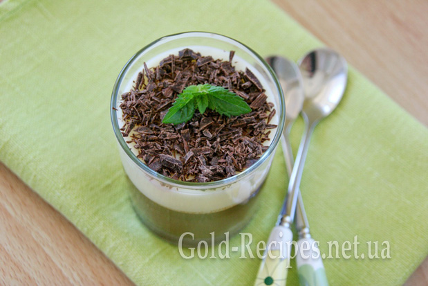 Ось і все, наше шоколадно-молочне желе готове. Його можна подати і так, а можна прикрасити тертим шоколадом і (або) гілочкою м’яти.