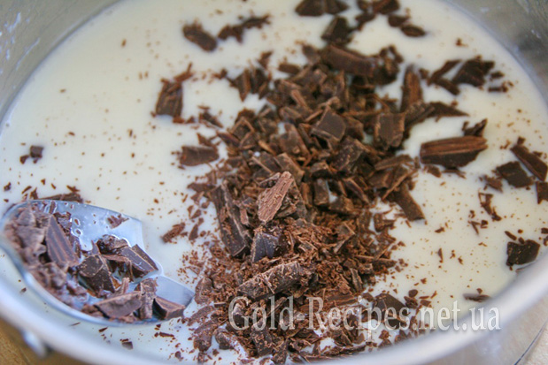 Шоколад тремо на тертку або нарізаємо дуже дрібно. Додаємо шоколад у молоко і нагріваємо на невеликому вогні, постійно помішуючи. Пам’ятайте, що молоко до кипіння доводити не потрібно! Нам важливо лише, щоб шоколад розтанув і став із молоком однорідною масою.
