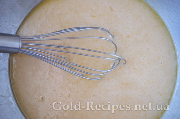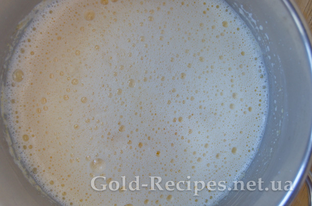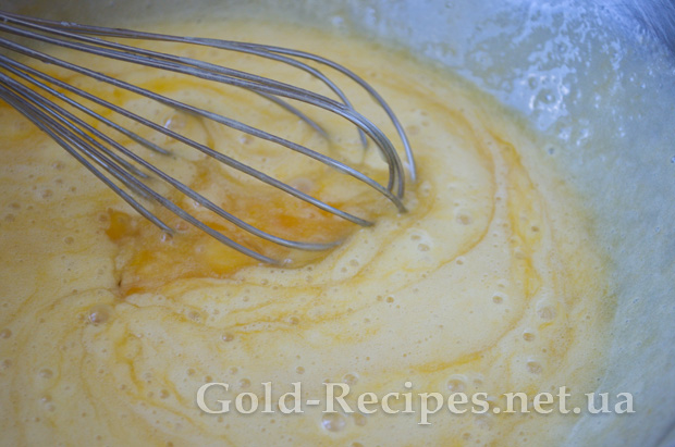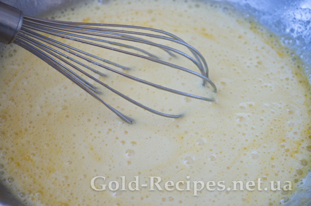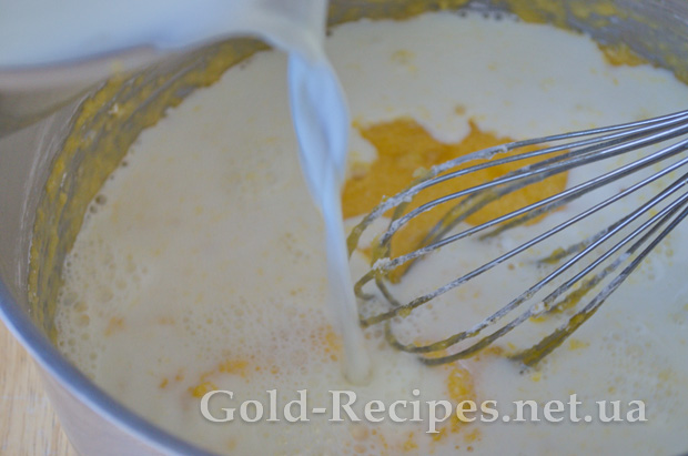 Потім поступово вливаємо гаряче молоко, і продовжуємо мішати до однорідності інгредієнтів.