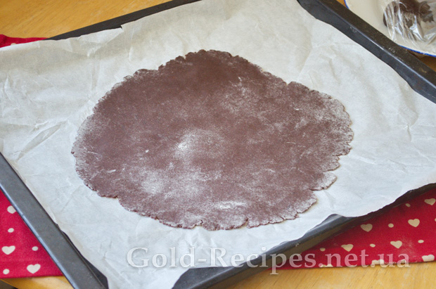 На злегка припиленій борошном поверхні розкачаємо кожну частину тіста в тонкий пласт діаметром приблизно 26 см.(із запасом).