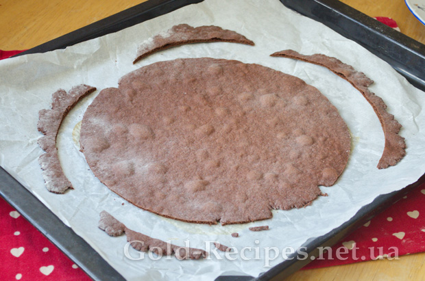 Акуратно перенесемо розкачаний корж на підготовлене деко. З бажанням наколемо корж виделкою по всій поверхні, щоб він не здувався під час випікання.