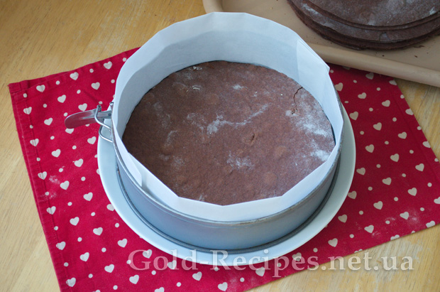 Випечемо кожен корж у розігрітій духовці протягом 5-6 хвилин. Коржі готуються дуже швидко! Орієнтуйтесь на час випічки, візуально не видно, коли вони готові.