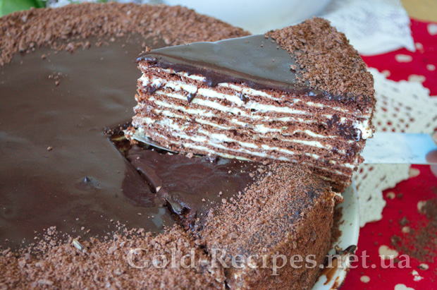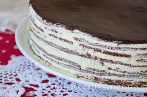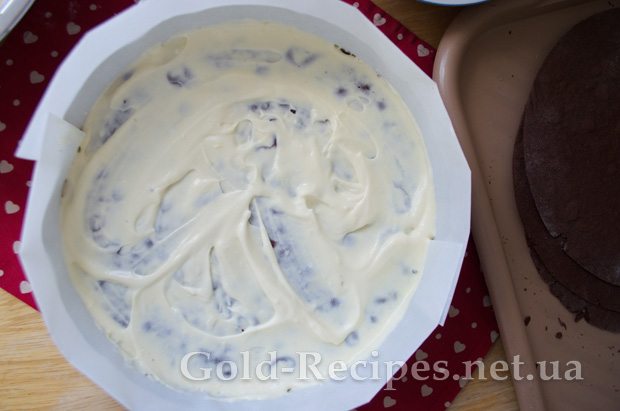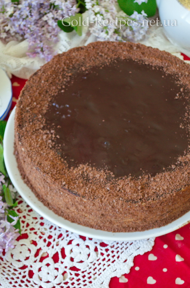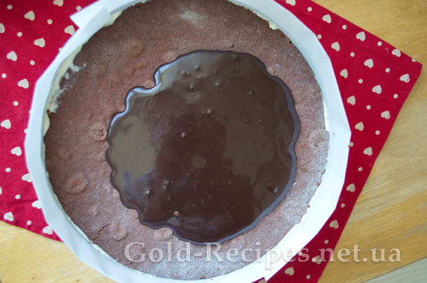Верхній корж торта не змащуємо кремом, а залишаємо для глазурі.