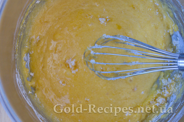 Розтираємо вінчиком жовтки, цукор і крохмаль.
