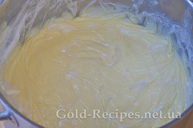 Накриваємо все плівкою «вконтакт» і прибираємо в холодне місце. Зазвичай я готую заварну основу з вечора, щоб вона вистигла до ранку.