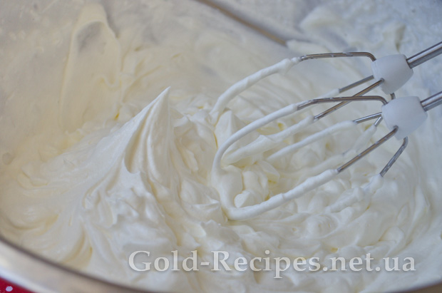 В окремій мисці збиваємо холодні вершки до крутих піків.