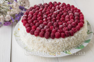 Детальніше...Бісквітний торт на День Народження з малиною і сирним кремом