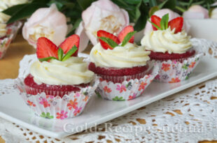 Вітаю вас, дорогі господиньки! Сьогоднішній рецепт я присвячую всім ласунам, і любителям гарних і смачних десертів. Як ви вже здогадалися з назви рецепта – будемо готувати капкейки з полуницею «Червоний оксамит». За смаком цей десерт схожий на класичний торт «Червоний Оксамит», про який я вам вже розповідала раніше, але свіжа …