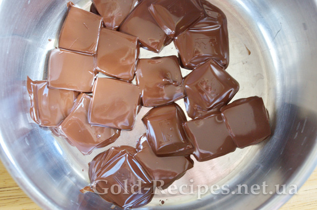 Чекаємо, коли заварна суміш для сирної паски повністю охолоне, а тим часом потрібно розтопити шоколад на водяній бані або в мікрохвильовці.