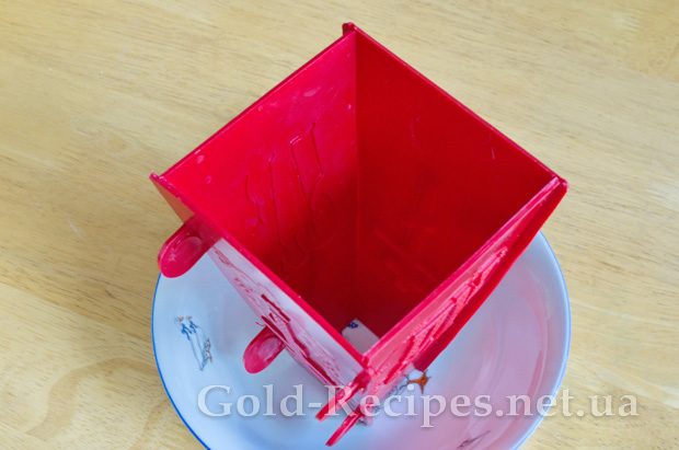 Тепер займемося підготовкою форми для паски. Збираємо пасочницю, і поміщаємо в глибоку тарілку, куди буде стікати рідина.