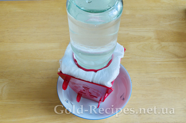 Ставимо зверху вантаж. Я використовувала літрову банку з водою, і відправляємо в холодильник мінімум на 12 годин.