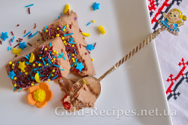 Потім паску з формою перевертаємо на тарілку, і акуратно звільняємо від форми. В останню чергу знімаємо марлю.