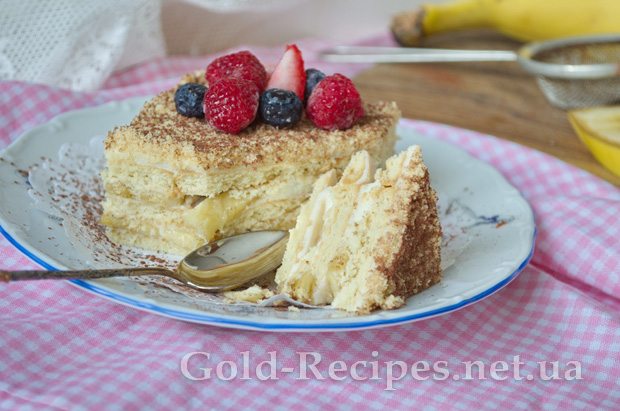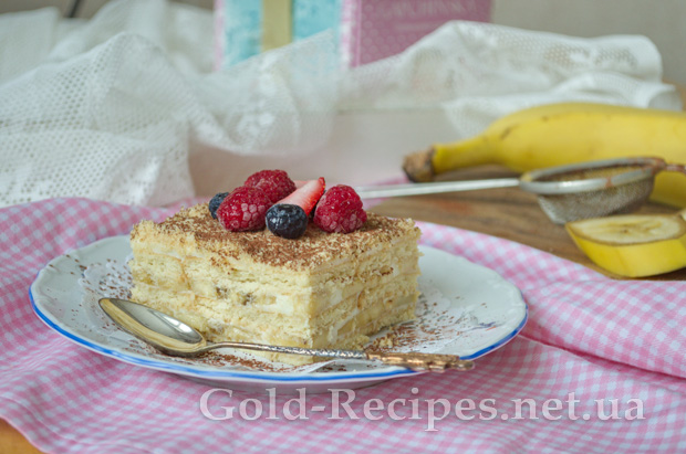 Ідеально приготувати такий торт з бананами і сметаною з вечора, а до ранку тортик буде повністю готовий до вживання.