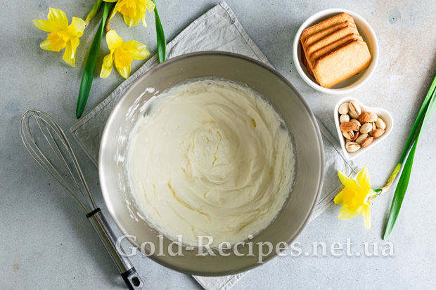 На максимальній швидкості міксера збиваємо інгредієнти до загустіння. Спочатку суміш вийде досить рідкою, але в процесі збивання крем загусне і набуде щільної консистенції.