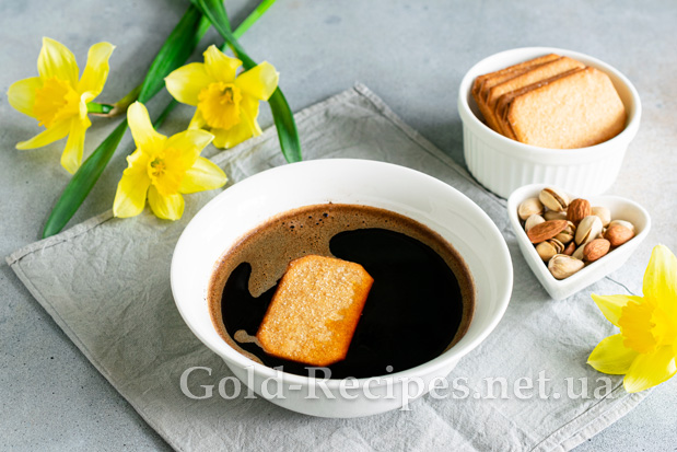 Готуємо каву для просочення печива. Я використовувала свіжозварену каву з мелених зерен. За бажанням можна використовувати розчинну каву або шоколад.