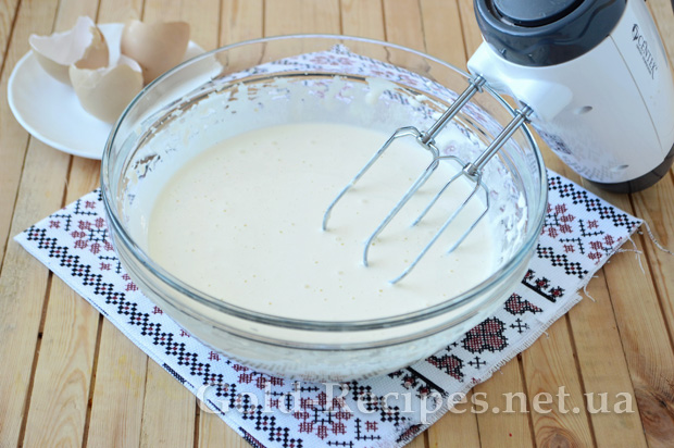 Тепер у глибокому і досить місткому посуді збиваємо до світлої пишності яйця з цукром.
