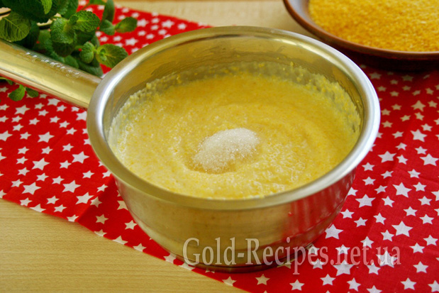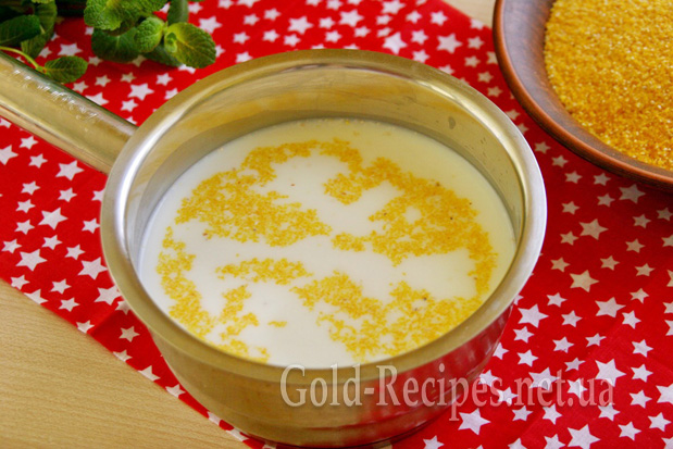 Якщо ж молоко кімнатної температури, одразу ж висипаємо в нього кукурудзяну крупу (якщо засипати крупу в гаряче молоко, утворяться грудочки – каша вийде неапетитна, грудочки залишаться твердими).