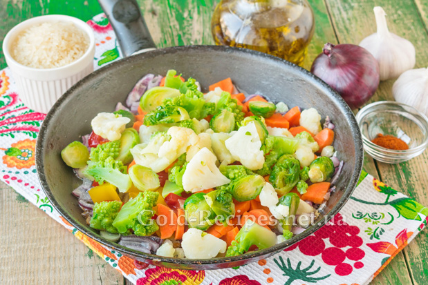 - 200 г заморожених овочів (брюссельська, цвітна капуста і романеско)