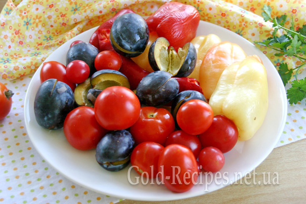 *Вказано вагу вже підготовлених інгредієнтів: у слив видалено кісточки, перці очищено від насіння і перегородок.