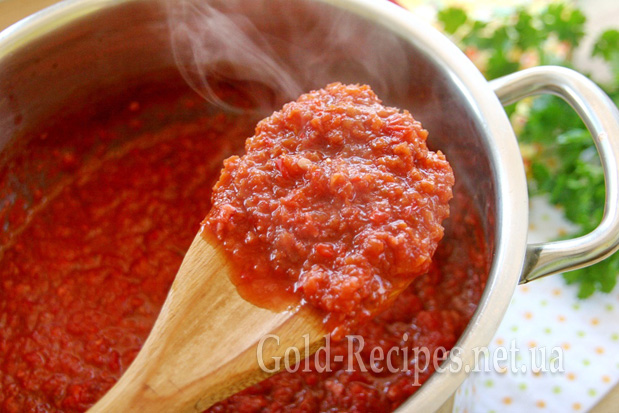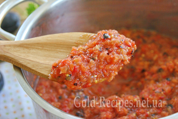 Знову ставимо каструлю з аджикою на вогонь і варимо ще 10 хвилин, кілька разів перемішавши за цей час.