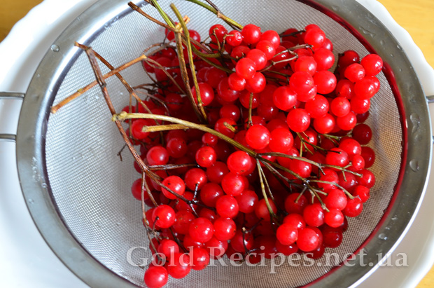 Грона калини добре промити під проточною водою і зірвати ягоди з гілок.