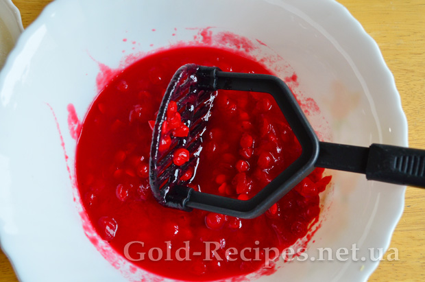 Товкачем для пюре розім’яти ягоди калини, щоб вийшла однорідна маса.