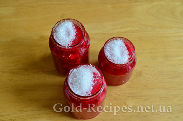 Цукор, що залишився, засипаємо в банки до верху.
