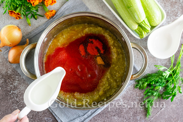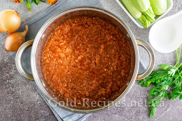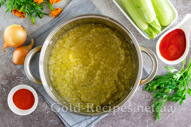 Накривши каструлю кришкою, відправляємо її на повільний вогонь. Тушкуємо кетчуп з кабачків протягом 20 хвилин після закипання.