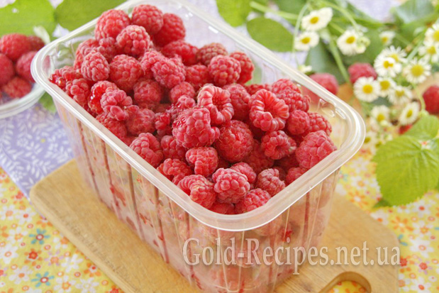 В іншому разі поміщаємо малину в друшляк, який опускаємо в ємність із водою. Потім друшляк із ягодами піднімаємо, даємо стекти зайвій воді. Витримуємо так малину хвилин 10-15, щоб стекла зайва вода.
