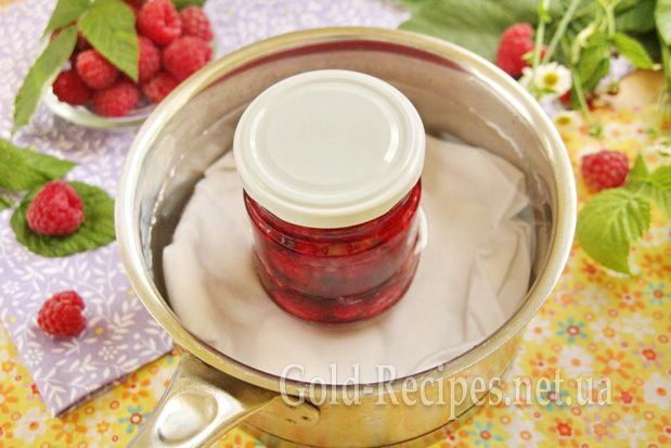 0,5 -1 л банки з малиною стерилізуємо 25-30 хвилин.