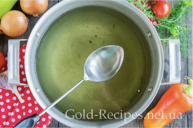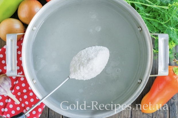 Далі готуємо маринад із розрахунку 1,5 л води на 1 трилітрову банку. Кладемо столову сіль у каструлю з водою, доводимо до кипіння.