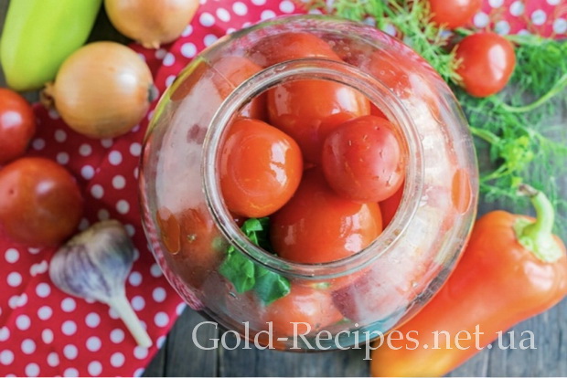 Зберігаємо готові мариновані помідори в темному прохолодному місці.