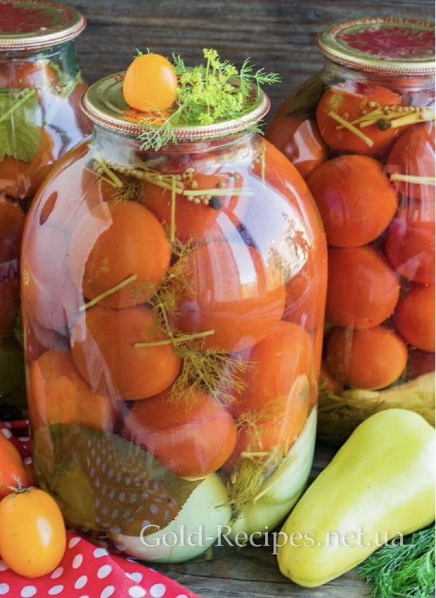 Це класичний рецепт маринованих помідорів з оцтом, закритих у 3-літрову банку.
