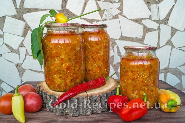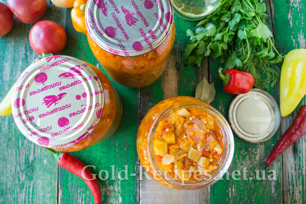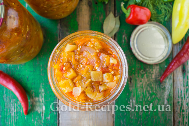 Перекладемо гарячий салат в сухі стерилізовані банки.