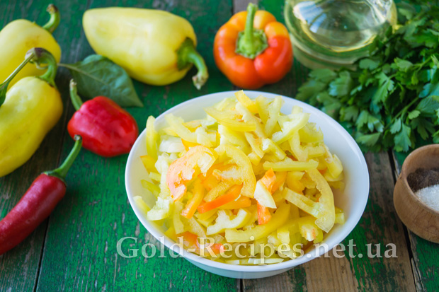 Тим часом підготуємо овочі. Солодкий перець помиємо, очистимо від насіннєвої коробки і поріжемо не надто довгою соломкою.