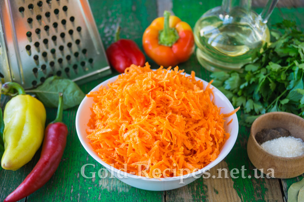 Моркву помиємо, почистимо овочечисткою від шкірки і натремо на крупній тертці.