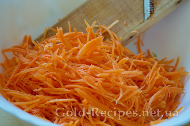 Моркву помити та почистити. Натерти її на тертці для корейських салатів.