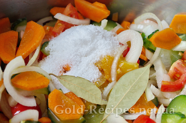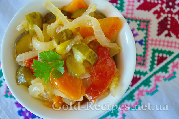 Салат виходить з нейтральним смаком не кислий і не солодкий, з багатим смаком літніх овочів і в найкращих традиціях консервації.