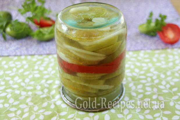 А далі все просто – укласти в банки, залити маринадом і відправити стерилізуватися.