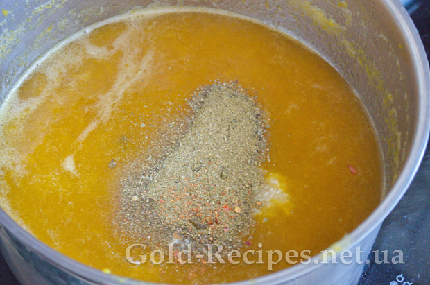 Наприкінці додаємо всі спеції та часник.