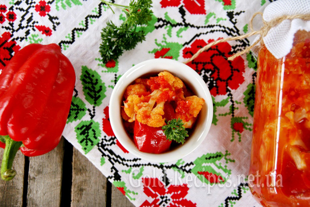 Такі заготовки (салати і закуски) з цвітної капусти дуже красиві та смачні. Хочете приклад?