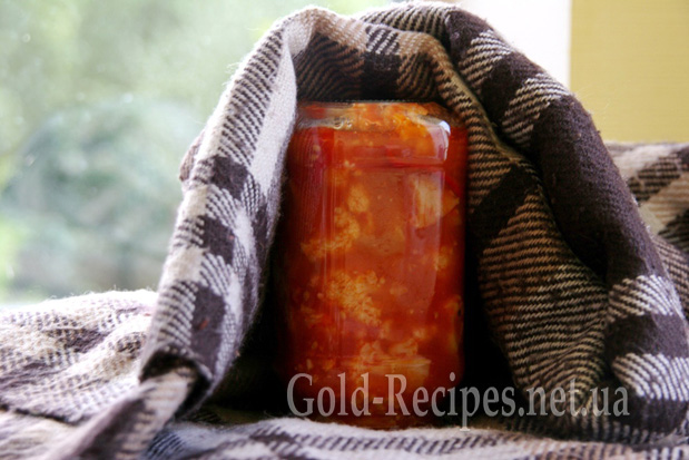 Готову закуску одразу розкладаємо по простерилізованих банках і герметично закриваємо.